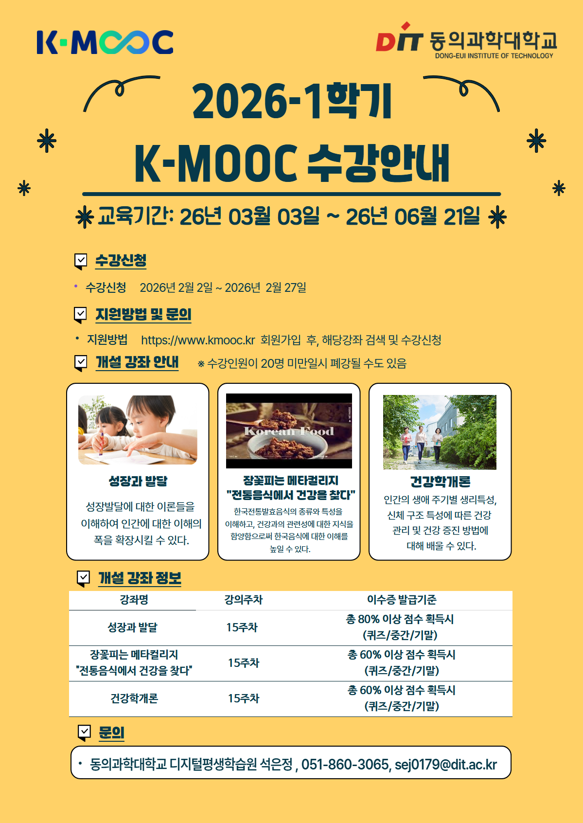 동의과학대학교 2026년 1학기 K-MOOC 강좌 수강 안내